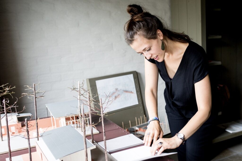 over naar concrete tekeningen. Haar kennis van architectuur zorgt voor